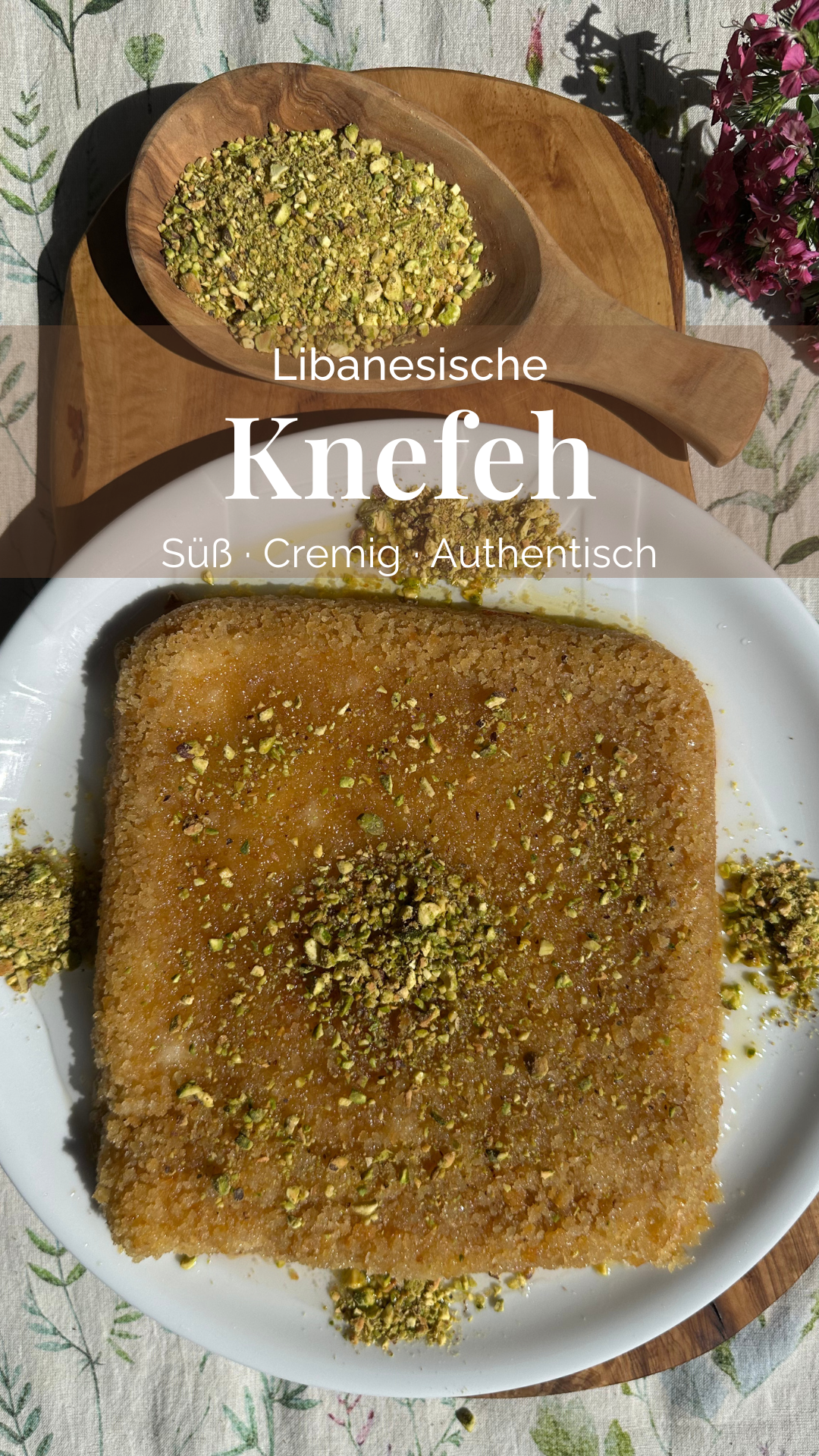 Knefeh is more than a dessert — it’s comfort, celebration, and pure joy in every warm bite. Crisp and golden on the outside, creamy and soft at the center, then finished with fragrant rose syrup and a shower of pistachios.